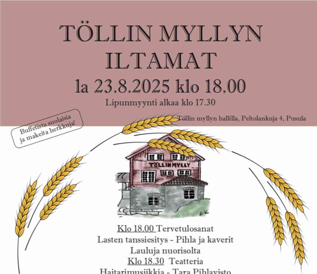 Töllin Myllyosuuskunnan ja Töllin kyläläisten järjestämiä tapahtumia.